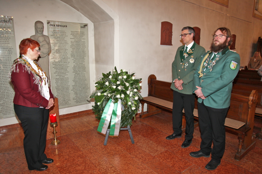 Dieser gemeinsame Gottesdienst ist auch immer Anlass um einen Kranz am Ehrenmal in der Kirche niederzulegen im Andenken an die Verstorbenen der Schützengesellschaft. Im vergangenen Jahr waren dies Inge Großmann, Ulrich Scheffler und Horst Häuser.